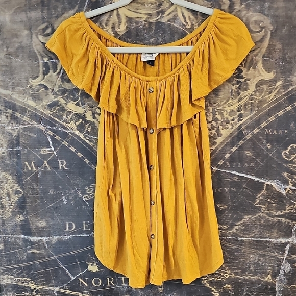 Universal Thread Gold Ruffled Puff Sleeve Blouse