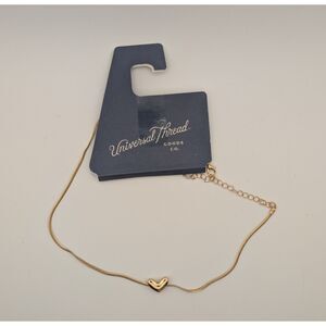Lovely Universal Thread Goods Co. gold-tone necklace featuring a sleek snake-style chain and a polished heart pendant centerpiece. Adjustable length with lobster clasp closure. Perfect for layering or wearing solo for a minimalist look.