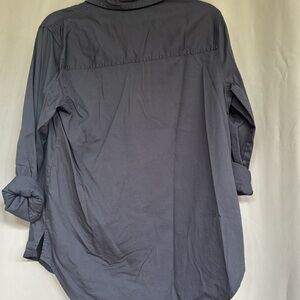 Chic gray button-up shirt with a classic collar. Ideal for versatile styling.