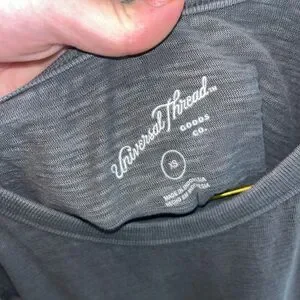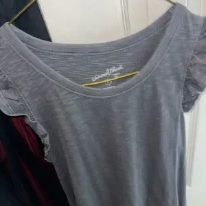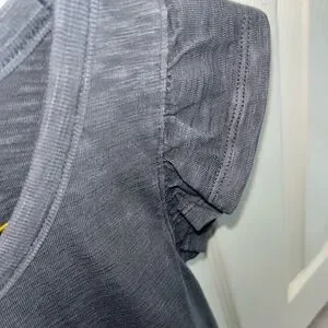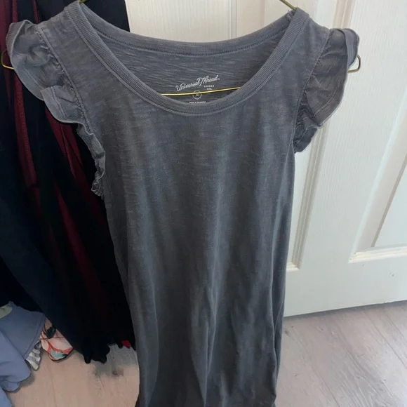 This Universal Thread top features a charming flutter sleeve design and crafted in a soft gray hue. The cap sleeves add a touch of elegance with their ruffled detail, making it a versatile addition to any casual wardrobe. Made from a comfortable cotton blend