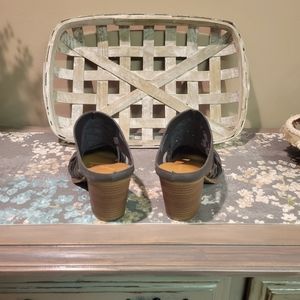 Stylish gray mules with woven design. Comfortable block heel. Perfect for casual wear.