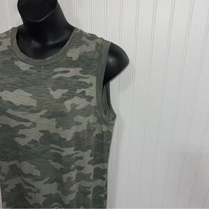 Chic sleeveless dress with a gray green camo pattern. Ideal for everyday wear.
