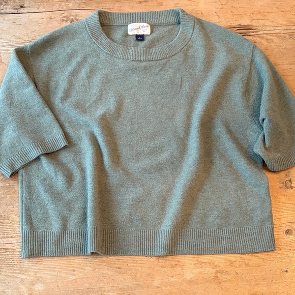 Soft crew neck sweater. Short sleeves. Ribbed hem and cuffs.