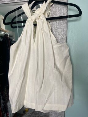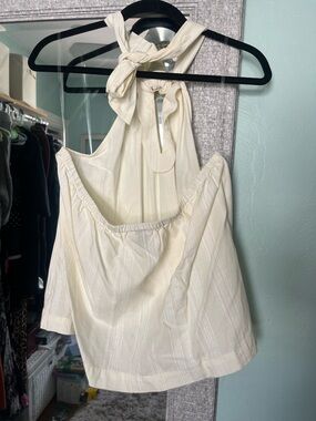 Elegant cream halter top with subtle textured stripe detail. Lightweight and versatile for everyday use. Neutral cream pairs well with any outfit.