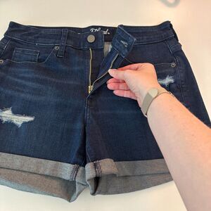 Universal Thread Hi-Rise Midi Dark Distressed Denim Double Cuffed Shorts