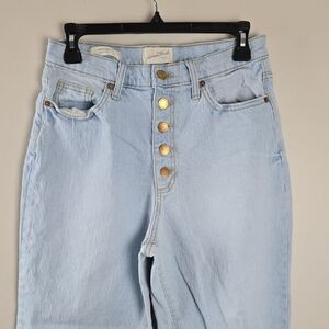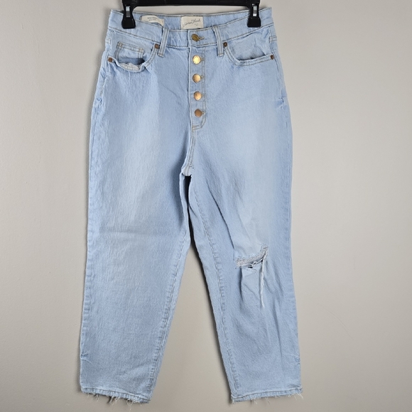 These high rise jeans from Universal Thread feature a relaxed fit with a straight leg silhouette, perfect for a casual, vintage-inspired look. The light blue color and distressed detailing add a touch of effortless style, making them a versatile addition to any wardrobe.