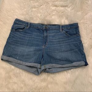 Good condition, has a small snag on the back above pocket (pictured). Universal Thread. High rise cuffed denim short. Light wash. Plus size 22W. Stretch 91% cotton, 7% recycled polyester, 2% spandex. Waist 21.5” Inseam 4” Front Rise 11”. All measurements are approximate and taken lying flat. Smoke free home. No trades, offers welcome.