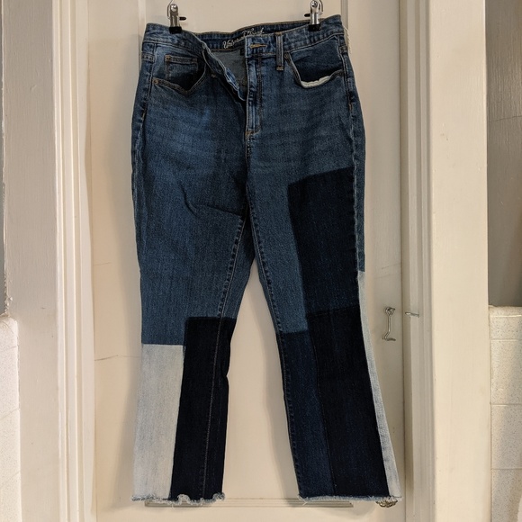 Cute patchwork/ block effect on these high rise kick boot crop jeans in size 8/29! I bought on posh but have never worn, they still have the thread "tag" on the belt loop without the cardboard (if that makes sense...)