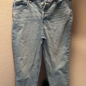 Chic high rise jeans in a soft light blue. Perfect for everyday wear. Classic design with a modern twist.