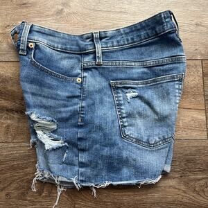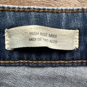 Universal Thread High Rise Midi Jean Shorts Women's 6/28 Blue Frayed Distressed