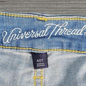 These midi shorts from Universal Thread are fitted at the hip and leg and made from power stretch denim. Content: 91% cotton, 7% polyester, 2% spandex. Care: machine wash, tumble dry.