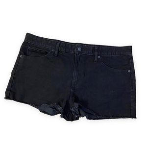 Universal Thread Black high rise shortie denim shorts. These casual frayed hem shorts are the perfect addition to a woman’s wardrobe for spring and summer. Wear over neutrals, or make a bold statement with a splash of color. cooler weather top. Like new condition.
