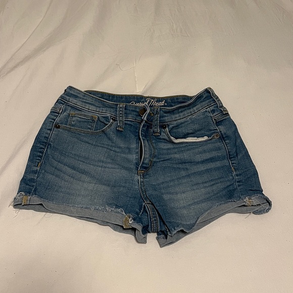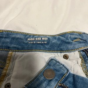 -Light/Medium wash high rise midi shorts
