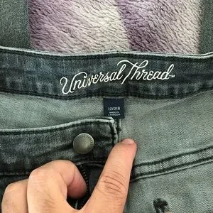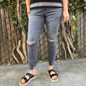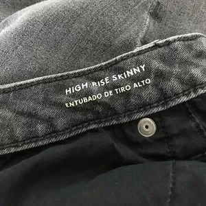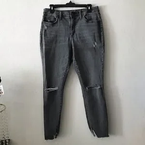 Size 12 regular, high rise skinny fit jeans in smoky gray wash. Previously worn but still a lot of life left in them.