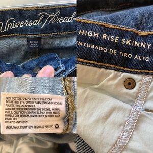 Universal Thread. High rise skinny jeans. Distressed. Zipper fly. Back & front pockets. Perfect staple jeans. Offers welcome! Size 18/34 R.