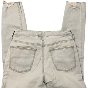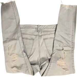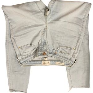 Light blue very cute distressed jeans, high waist and soft denim. Worn once. 10.5” rise and 29” inseam.