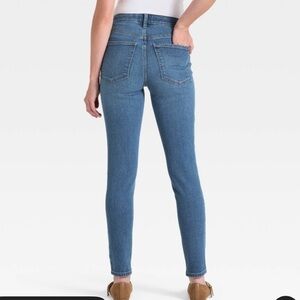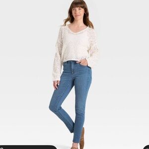 Medium blue wash -high rise-12 inch- skinny jeans. inseam 28 1/2 inches. 2 % spandex-has stretch. Universal Thread. Size 12R. 16 1/2 inches waist laying flat.