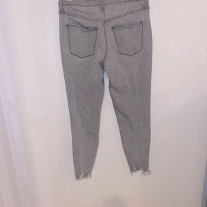 Super stretchy light grey cropped jeans from Universal Thread. Light distressing mainly around the ankles. Super comfy every day go to jeans in a unique wash!