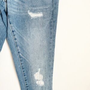 Distressed, high waist skinny. Excellent preowned condition, no rips stains or tears other than by design. Measurements laying down