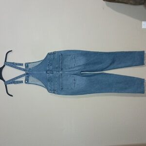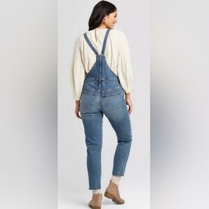 Universal Thread High-Rise Raw Hem Tapered Crpped Denim Overalls. Soft and Stretchy Fabric for Long-Lasting Comfort. Multiple Pockets, Side Buttons, and Adjustable Straps. Excellent Like New Condition.