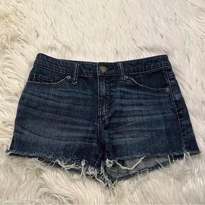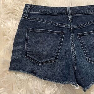 Great condition, minor wear. Universal thread. High-rise shortie shorts. Cut off. Dark wash. Thinner material.