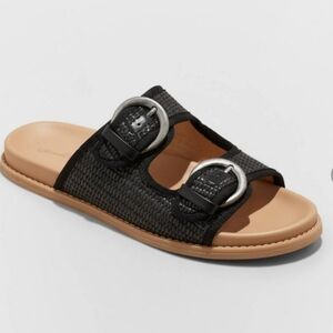 Universal Thread™ Honey Raffia Footbed Sporty Sandals - Black SIZE 11