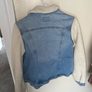 - denim with sherpa sleeves (sleeves are lined inside as well for warmth)