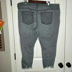 Some loose threading on back pocket (pictured). Distressed light faded gray black