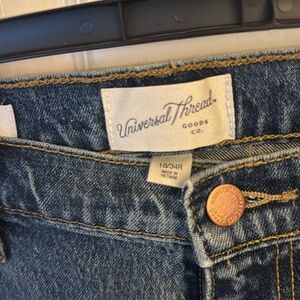These universal thread jeans from target are super cute. Slight barrel cut with front seams. They are in excellent condition.