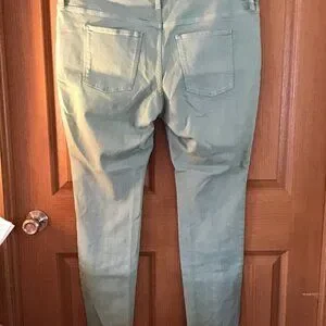 Universal Thread Jeans Goods Co, 18/34L Mid rise Skinny 90% Algodon, 8% Polyester, 2% Spandex, Front and back pockets, mint green in color, belt loops