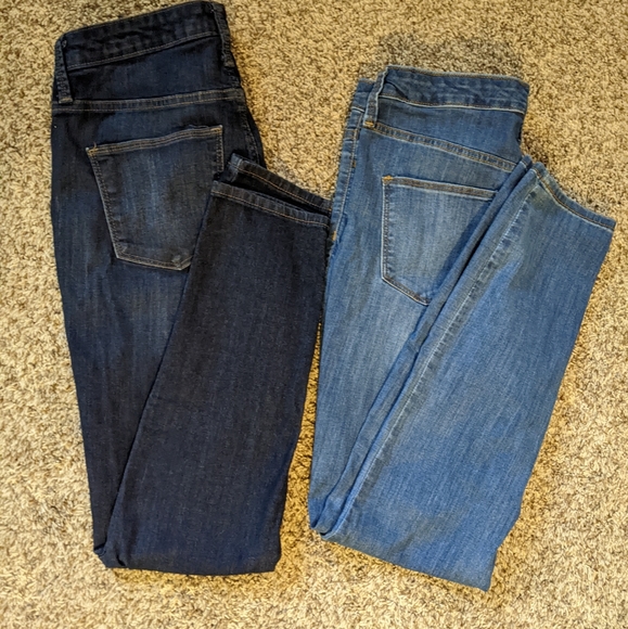 2 pair of Universal Thread high rise skinny jeans. Size 6 (28R). One pair is dark wash, one pair is light wash. Only wore a few times, in great condition.
