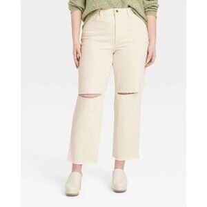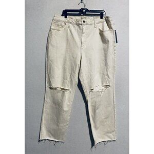 Universal Thread Jeans Womens 17 Ivory White Vintage Straight Ripped Cropped
