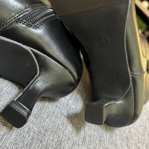 These ankle boots are designed with a Louis heel style and memory foam insole for added comfort.
