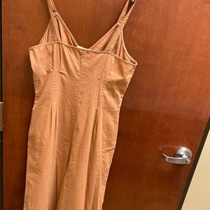 Mid-rise Sleeveless ankle length straight leg jumpsuit. Has side zipper and pockets