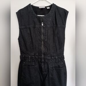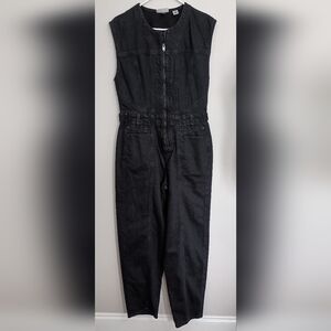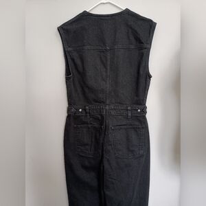 Black sleeveless denim jumpsuit