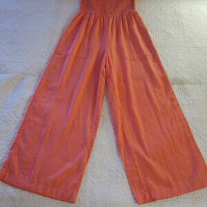 Universal Thread Jumpsuit S Coral/Orange Smocked Linen Blend Pockets