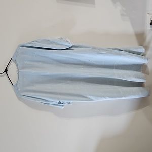 Light blue, lightweight duster. At the bottom of the duster and end of sleeves has frayed hems.