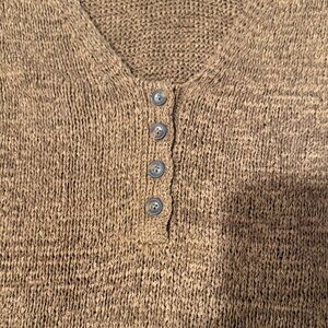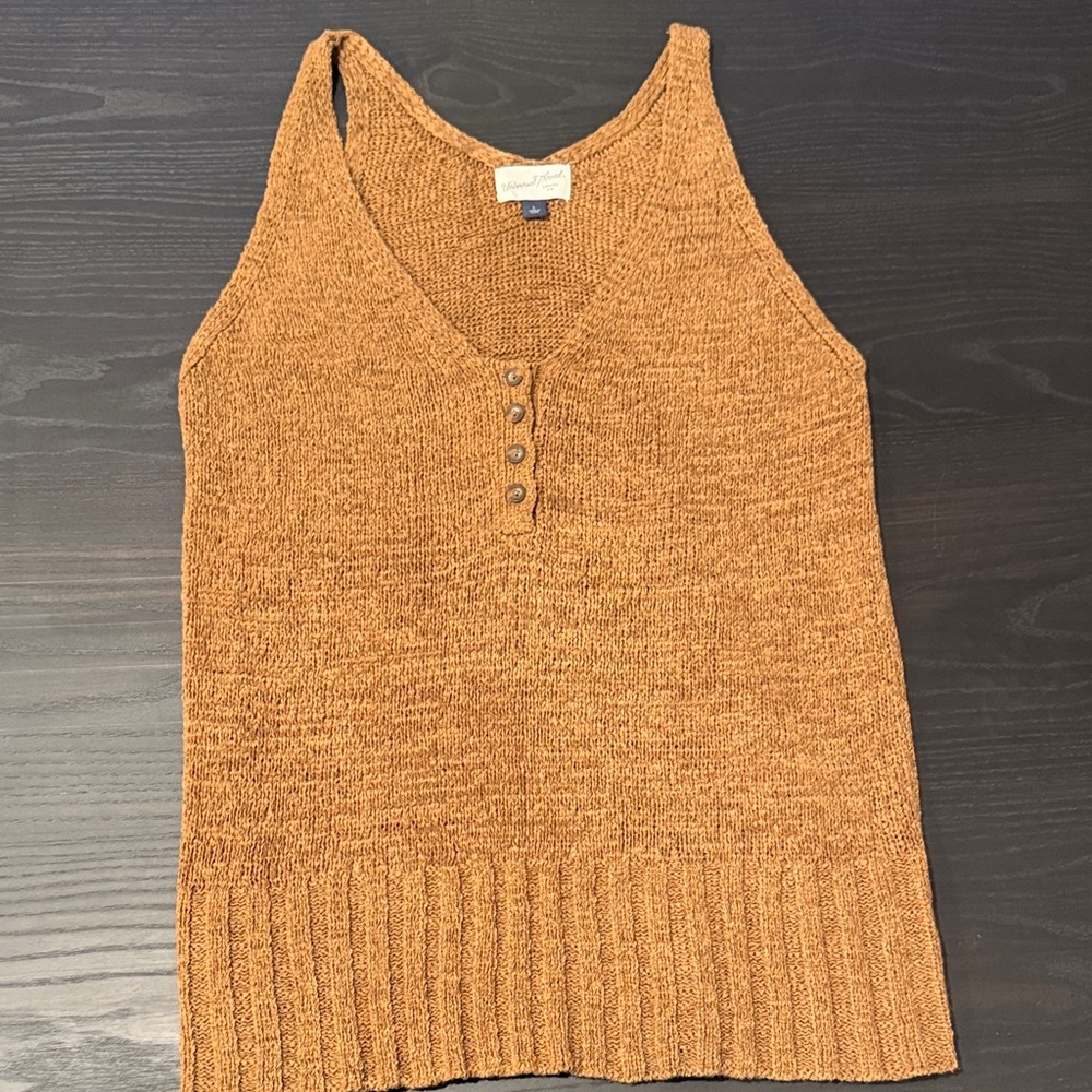 Chic sweater knit tank top with button detail. Perfect for layering or casual wear. Soft and stylish.