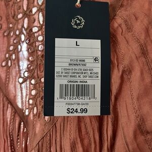 Universal Thread | L | Embroidered Ruffle Sleeve Top - Rust