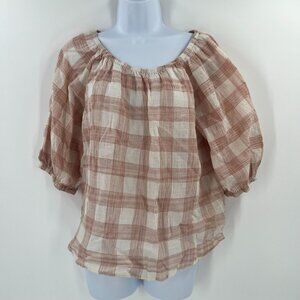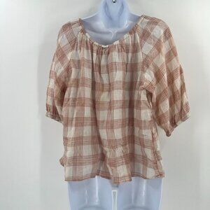 Universal Thread L Plaid Peasant Top Cotton Gauze Off Shoulder Boho