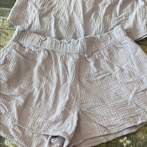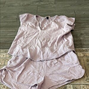 Chic lavender crinkle gauze top with matching shorts. Relaxed fit with a v-neckline, pull on shorts. No damage, stains, or odor. Smoke free home. Both top and shorts are size large.