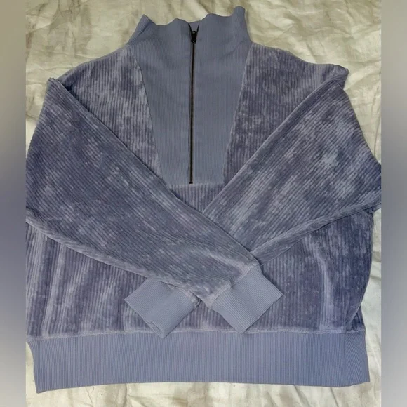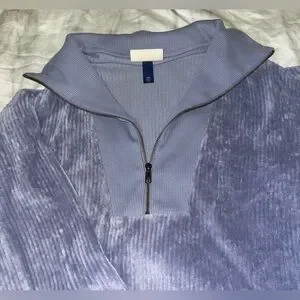 Quater-zip lavender pullover with ribbed design. Ideal for everyday comfort. Only worn once!