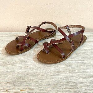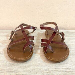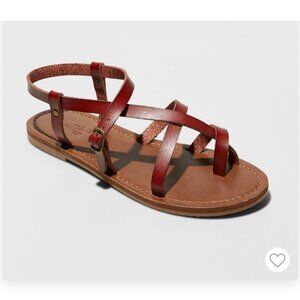 Universal Thread Lavinia Sandals 6 Brown Leather Strappy Toe Loop Flat