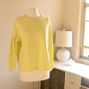 Lemon yellow sweatshirt by Universal Thread. 100% cotton. Balloon style sleeves. I never wore this and consider it in like-new condition. I only washed it on cold and hang dried it. No flaws, I just have too many clothes and need to clear out some space. Thanks for looking!
