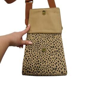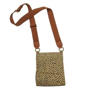 Universal Thread Leopard Print Cross-Body Bag. Rectangle Geometric Envelope Side Bag, Cute Animal Print Pattern and Cognac Strap. Beige Tan Taupe Color with Black Detail