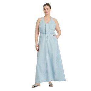 Universal Thread Light Blue Denim Halter Style Maxi Dress -- Women's Size 14