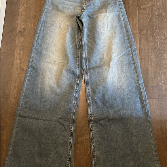 Stylish light blue jeans. Wide-leg design. Comfortable fit.