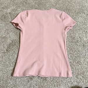 Chic light pink button-down shirt. Short sleeves and classic collar. Ideal for casual wear.