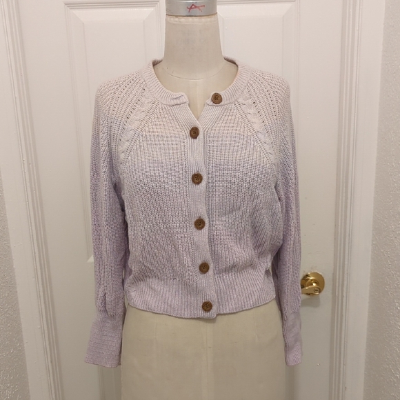 Chic and comfortable button-up cardigan. Ideal for layering. Features a soft knit texture.