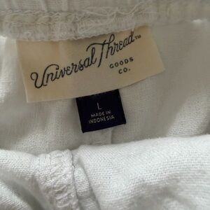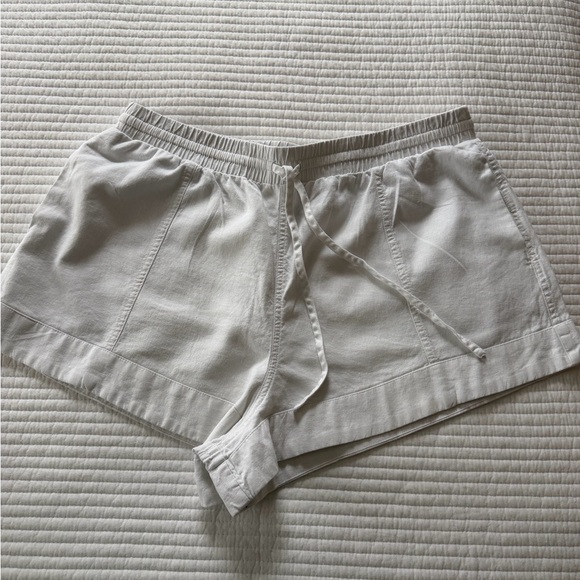 Neutral stone-colored athletic shorts by Universal Thread. Elastic waistband with functional drawstring. Side pockets for essentials. Lightweight, breathable fabric. Casual relaxed fit for movement.